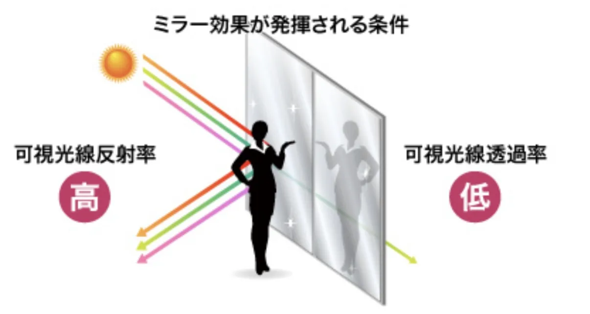 ミラー効果 - 断熱遮熱フィルムには、光を反射する「ミラー効果」を持つタイプがあります。日中は室内が見えにくくなり、プライバシー保護と遮熱を同時に実現。ミラー効果が高いほど室内は木陰のような柔らかな明るさになり、遮熱効果も向上します。ただし夜間は室内から外が見えにくく、外から室内が見えやすくなるため、用途に応じた製品選びが重要です。